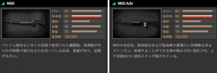 クロスファイアでは「M60」「RPK」などが登場するが、